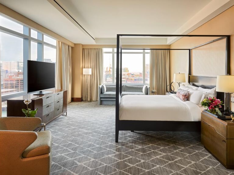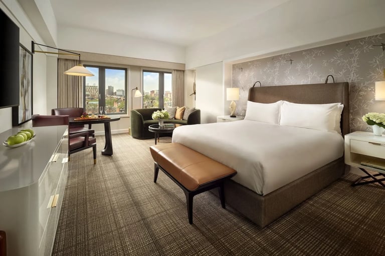 Situated in the center of the city, The Langham, Boston serves as an ideal starting point for all your explorations. Just a short walk from the hotel lies Faneuil Hall Marketplace and the renowned North End neighborhood, where visitors can shop, enjoy dining, and discover iconic cultural sites such as the Seaport District and the Freedom Trail. This super rated 5-star hotel is located 925 meters from the city center. Places nearby within 1 km are Irish Heritage Trail, Norman B. Leventhal Park, Rowes Wharf, Old State House, Faneuil Hall Marketplace, New England Aquarium, Rose Fitzgerald Kennedy Greenway, and Sears Crescent. Find more other super rated 5-star hotels in Boston.