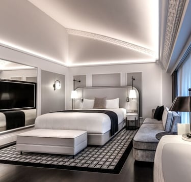 Drawing inspiration from the illustrious era of hotels, The Royce Hotel serves as a lavish retreat where extravagance is anticipated, indulgence is welcomed, creativity is honored, and the extraordinary is celebrated. This super rated 5-star hotel is located 2.5 km from the city center. Places nearby within 1 km are King's Domain Gardens, LaTrobe's Cottage, Shrine of Remembrance, Tan Track, Royal Botanic Gardens, Holmesglen Institute, Malthouse Theatre, and Sidney Myer Music Bowl. Find more other super rated 5-star hotels in Melbourne.