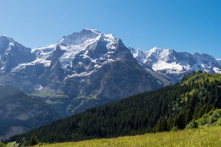 Create your own journey to the enchanting village of Lauterbrunnen. Wander through the delightful village, soaking in its tranquil beauty and admiring the Staubbach waterfall. Take a cable car to Mürren, a Swiss mountain village nestled at the base of the Schilthorn peak, where you'll have leisure time to discover its magnificent waterfalls and enjoy an unparalleled view of the Eiger, Mönch, and Jungfrau. Continue your exploration along the gentle trail to Gimmelwald, a small, breathtakingly beautiful, car-free mountain farming village in Switzerland's Bernese Oberland, celebrated for its pristine and traditional alpine allure.