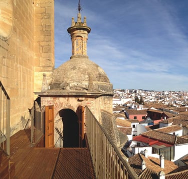 Stroll across Puente Nuevo to enjoy breathtaking views of the gorge. You can also venture down into the El Tajo Gorge, check out nearby viewpoints such as Mirador de Aldehuela and Jardines de Cuenca, delve into the historic old town, and snap iconic photos from both below and above the grand 18th-century structure. After that, make your way to Iglesia de Santa María la Mayor and also gain access to decks offering unique panoramic views of Ronda. Close to the church, you can explore Ronda's historic old town, visit the Palacio de Mondragón, and stroll through the Baños Árabes, the Moorish thermal baths dating back to the 13th and 14th centuries.
